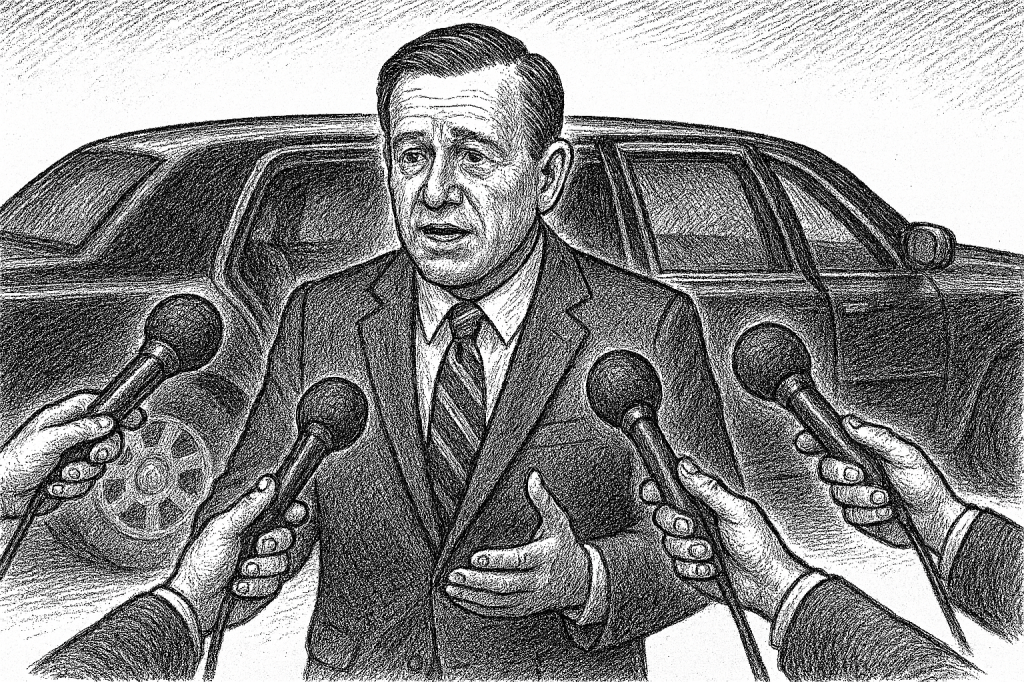 Senator Willson appeared desolate in a navy suit and red tie, carefully chosen to highlight his pale face. Everyone noticed he had been crying. Some even looked at their shoes as a gesture of condolence. He walked silently past the media, his feigned grief too deep to express.